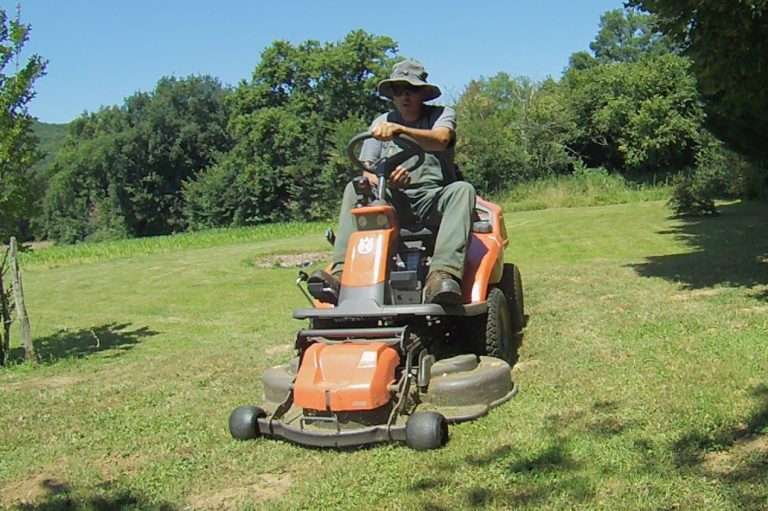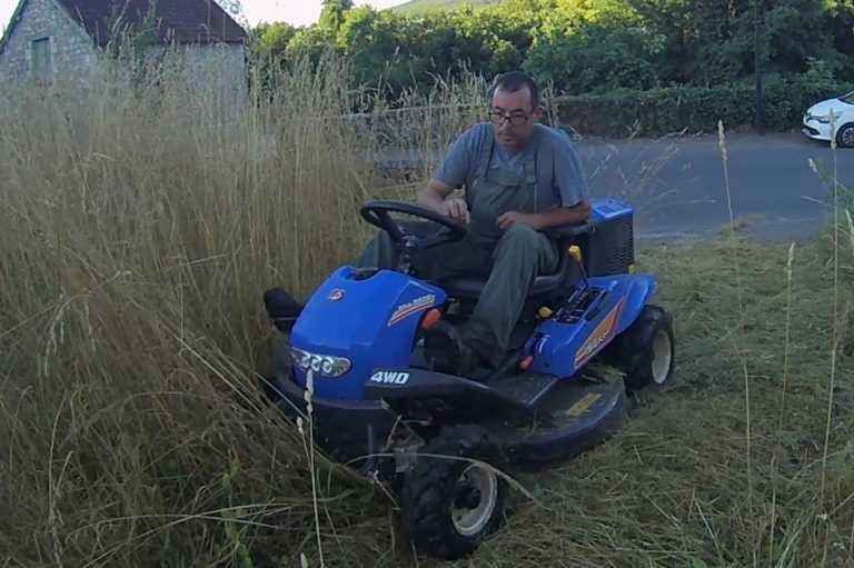 -La tonte de grandes surfaces même pentues grâce à une machine de 15 cv, 4 roues motrices avec une coupe de 103 centimètres.